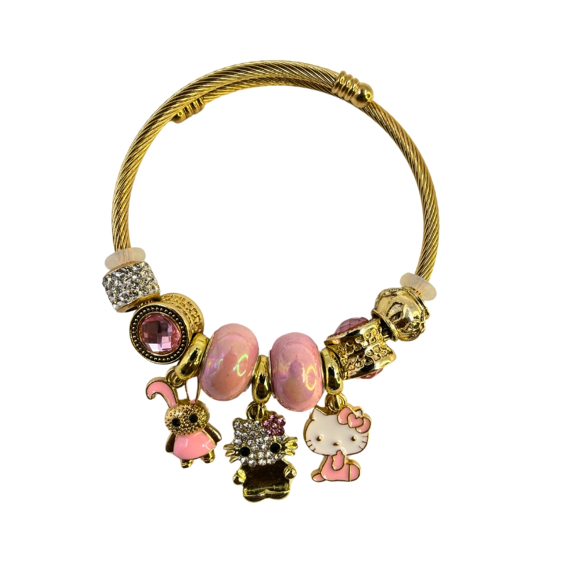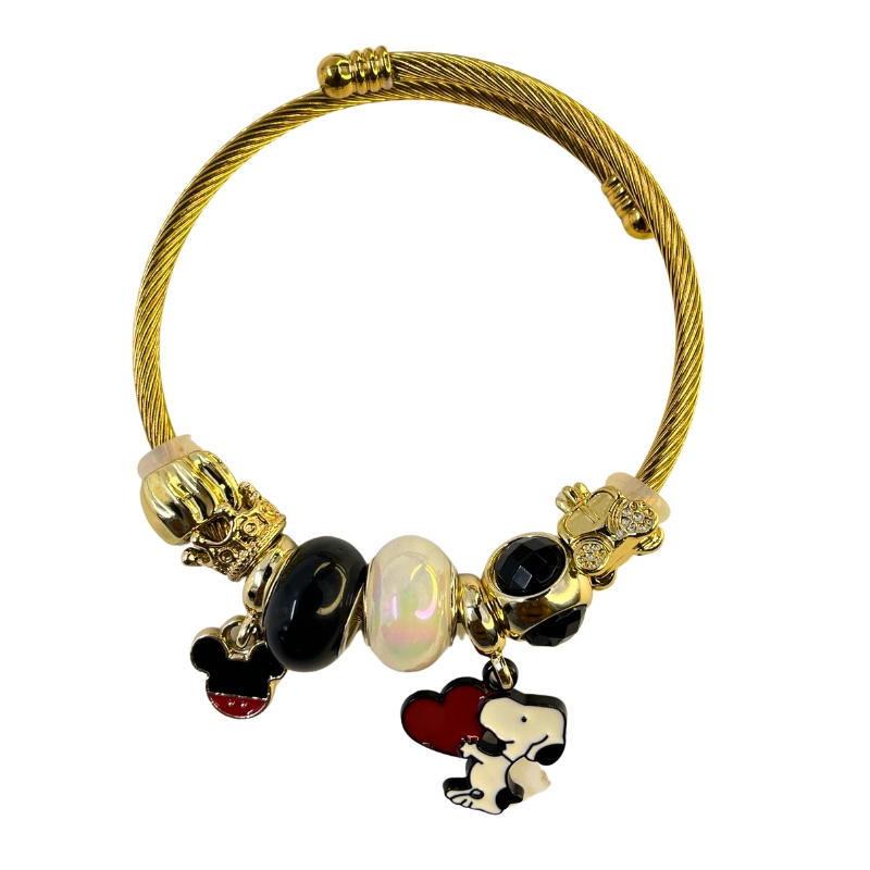 Elevate your accessory game with this enchanting set of gold-tone bracelets, a delightful collection designed to capture hearts and spark smiles. Each bracelet showcases a unique array of whimsical charms and vibrant beads, blending playful designs with chic elegance. Whether you’re dressing up for a party or adding a dash of fun to your everyday wear, these bracelets offer versatile styling options. They make a perfect gift choice for loved ones or a charming addition to your jewelry collection. Embrace the joy and creativity of fashion with these captivating pieces, designed to inspire and enchant.