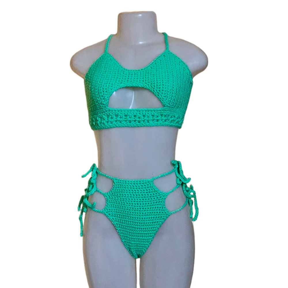 📍This eye-catching green crochet bikini top is sure to make a splash at the beach.