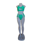 📍Crafted from shimmering green acrylic and cotton material, it adds a touch of glamour. The design is finished with our premium mix of crochet and elastic trims.