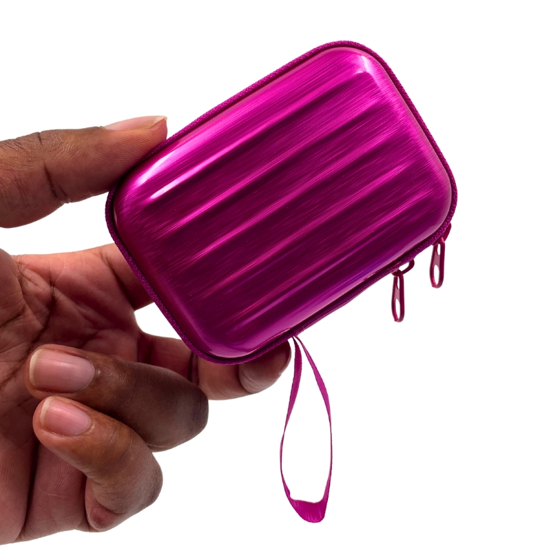 The purse opens easily with a zip that runs down the middle of both sides, revealing ample space to store your makeup, skincare products, or other small items securely. Its compact size makes it ideal for travel, fitting neatly into your handbag or luggage while keeping your beauty essentials organized and within reach. Whether you’re prepping for a night out or just freshening up on the go, the Mini Makeup Purse is your perfect companion for effortless beauty management.
