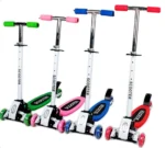 - PU WHEELS for smooth ride. Scooter can be used indoors too as it will not leave any mark on tiles due to high quality PU Wheels. 2 Big front wheels and small rear LED wheels glows bright enough to see during the day time. The faster you go, light becomes more prominent